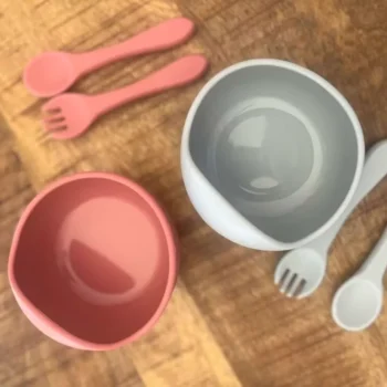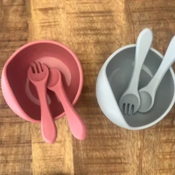3PCS Silicone Baby Feeding Set with Suction Bowl, Spoon & Fork – BPA Free