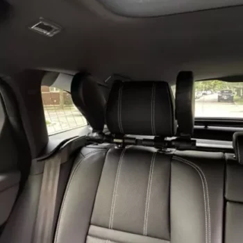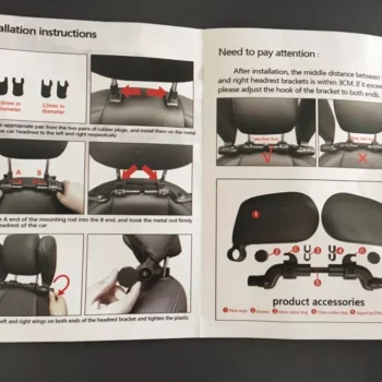 Black in color, our headrest blends in with a majority of vehicle interiors. And as long as your headrest poles are at a minimum of 3.75 inches apart, our headrest will fit just fine. Our headrest is made of sturdy ABS plastic with memory foam cushion.