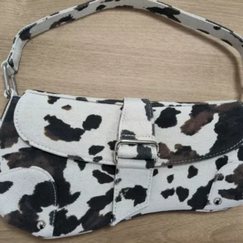 Cow Print Canvas Shoulder Bag – Vintage Animal Print Underarm Tote