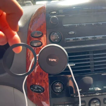Equipped with 20 precisely arranged permanent magnets, this car phone holder ensures your device stays firmly in place, no matter how rough the road gets. For phones without MagSafe or with non-compatible cases, an extra adhesive metal ring is included, allowing you to easily attach the holder without interfering with your phone’s signal or charging ability. The strong magnet instantly aligns and secures your device for quick, one-handed operation, making navigation and calls safer while driving.