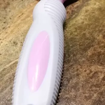 What can I say? This pet comb exceeded all my expectations! Not only does it do an excellent job at removing knots from fur, but its multi-purpose design also helps reduce shedding while offering a soothing massage experience for your beloved pets. Its durable stainless steel blades have remained impressively sharp despite frequent use on our three dogs' different coat types. Moreover, the non-slip grip handle ensures comfortable handling throughout extended grooming periods – no more sore hands! What really sets this product apart though is its pet-safe design; those rounded blade tips provide peace of mind knowing that you won't accidentally harm your pets' delicate skin during their beauty routine. And let’s not forget about style; having color options like purple, pink and gray allows me to express myself through everyday tools like these!