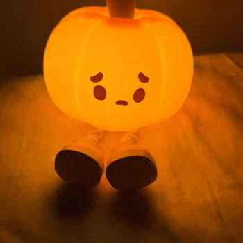 This pumpkin LED night light, let me tell, it's a fantastic addition to my kiddo room. My daughter just can't get enough of how soft and squishy this thing is. It's like her own personal stress ball - but way cooler because it lights up! And as for me I'm all about that durable silicone material they've used. You know what that means right? No worries whatsoever about any breakages or damage – perfect for those tiny hands. But wait,’s more! This isn’t your regular run-of-theill night light; it comes with a dimmable which is honestly such a game-changer. We can now easily adjust the brightness level according to our needs or mood - whether we're reading bedtime stories or simply unwinding from the day, making every moment even more enjoyable than before. And here’s another bonus point: its USB rechargeability feature. This right here saves us from the constant hassle of battery replacements – an absolute life-saver for busy parents like us who are always on-the-go! So not only does this nifty gadget provide comfort and fun for my little one but also convenience and practicality for us adults too! So yeah, if you’re looking around trying to find something unique yet functional as a night light option then look no further because this cute pumpkin LED has got you covered in every possible way.
