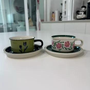 With its delightful vintage design, this mug and tray set stands out effortlessly on any kitchen counter, coffee nook, or dining table. Its artistic aesthetic and high-quality ceramic craftsmanship make it not only a drinkware piece but a decorative statement. If you’re someone who loves beautiful, functional design — or you’re simply looking for a gift with personality — this mug and tray set is the one.